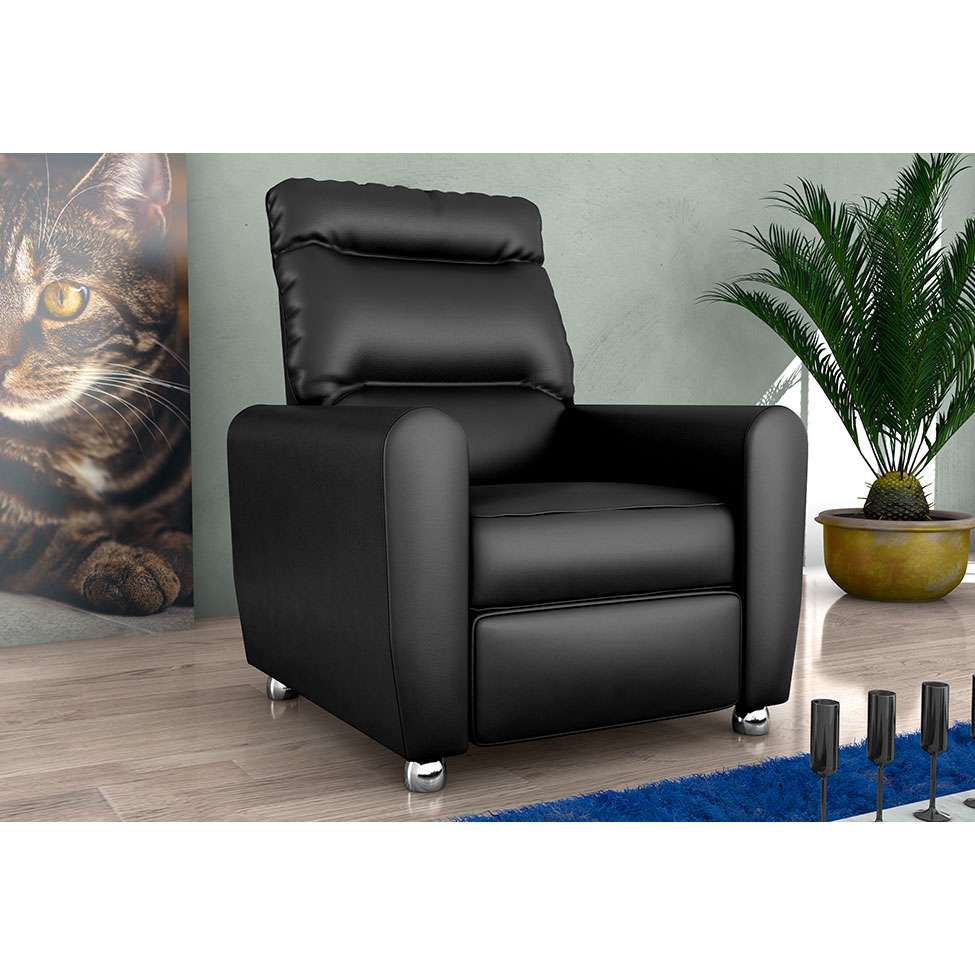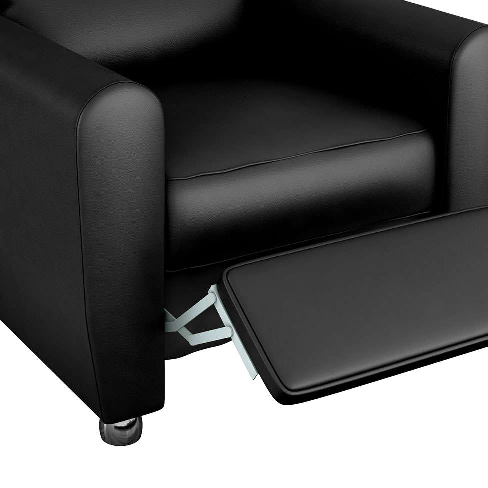 A Poltrona Reclinável Pollo possui estrutura em eucalipto e MDF, encosto em fibra de silicone e flocos de espuma, assento em espuma D23 e revestimento sintético